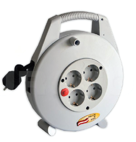 - Produžni kabel, čvrsto kućište, sive boje, ergonomska ručka, 4 šuko utičnice,