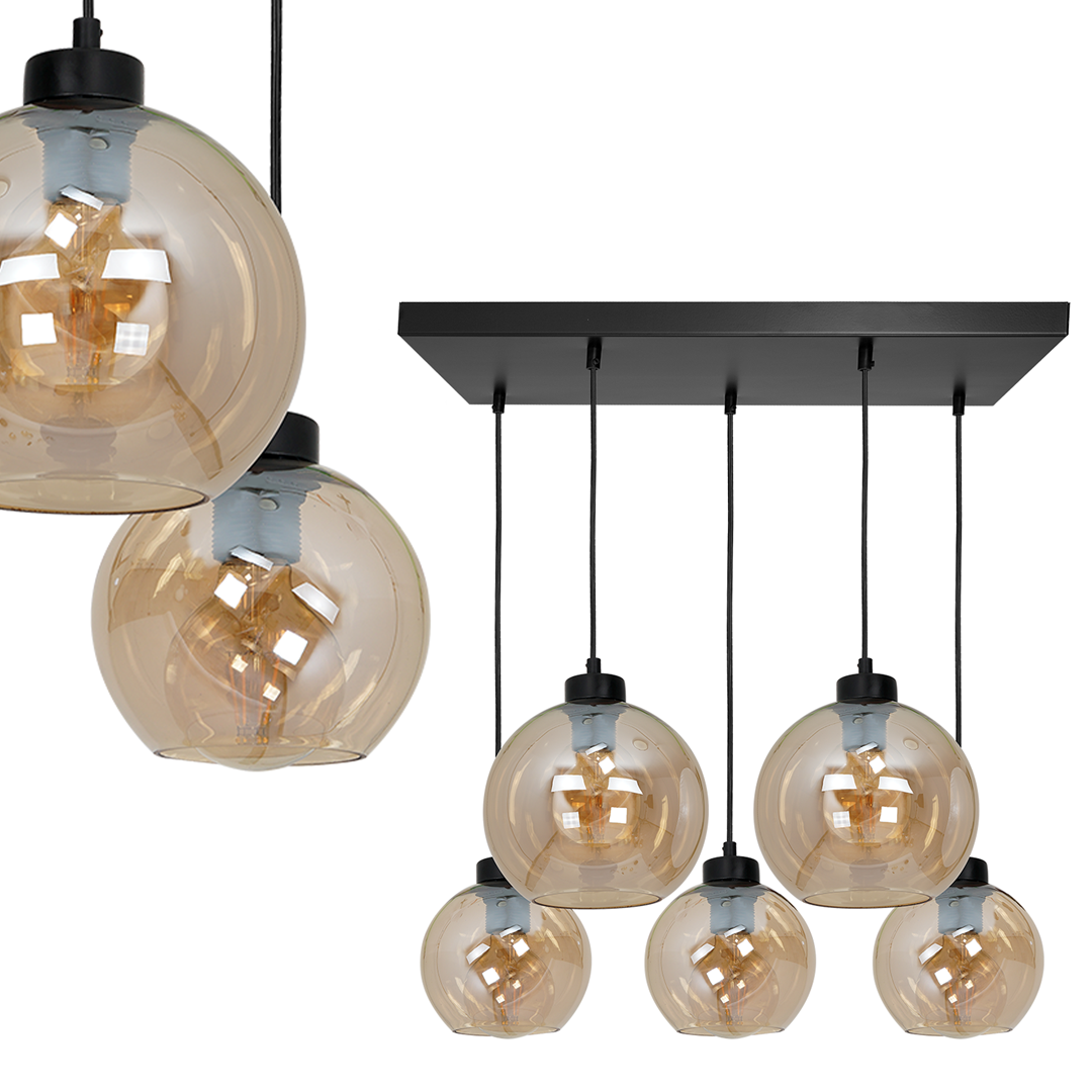 lampa wisząca z pięcioma źródłami światła transparentna, przydymiona, bursztynowa MLP65900, MLP6591, MLP6592