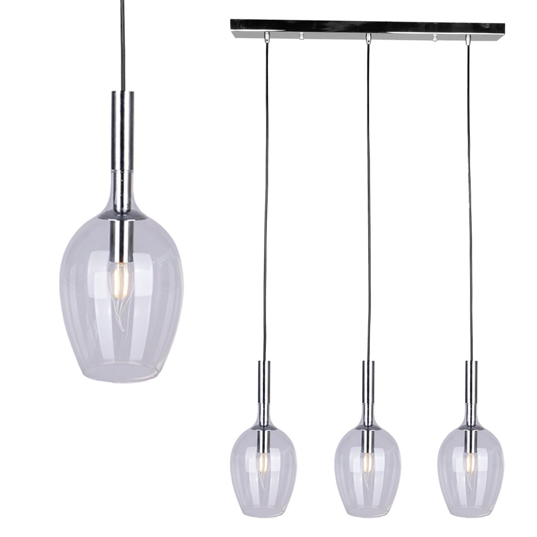 lampa wisząca z trzema źródłami światła z transparentnym kloszem ML6164