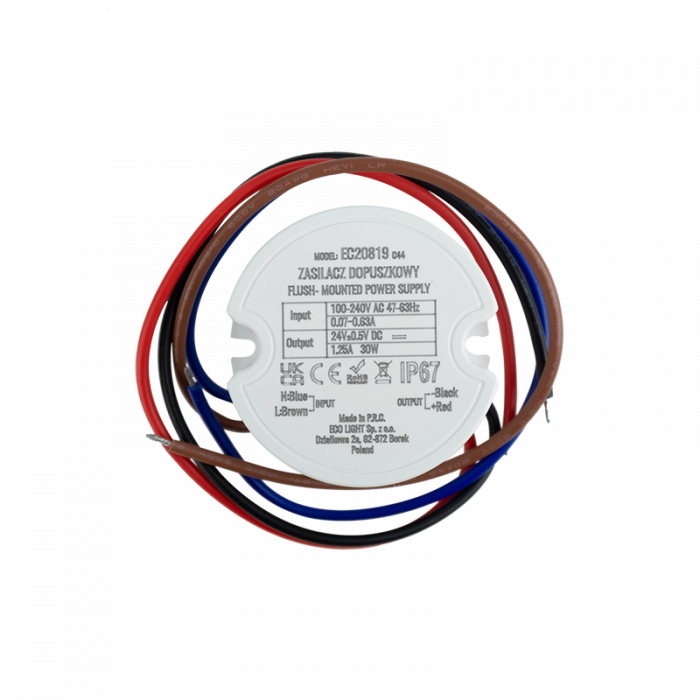 Tražite pouzdan i izdržljiv izvor napajanja za LED instalacije ili niskonaponske uređaje? Ovo ugradbeno napajanje od 30 W, 24 V DC izvrstan je izbor. Njegove kompaktne dimenzije (50 x 22 mm) omogućuju mu da se savršeno uklopi u standardnu ​​razvodnu kutiju Ø60, pojednostavljujući estetsku instalaciju i štedeći prostor.