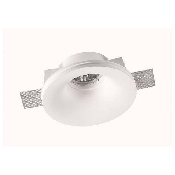 Okrugla gipsana armatura bijele boje namijenjena za žarulje tipa GU10 i MR16.