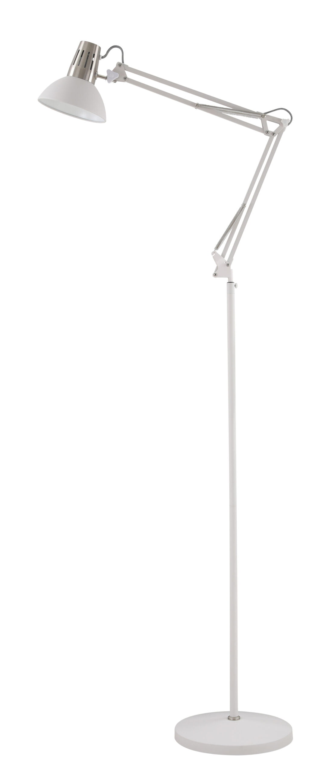 Svjetiljka ARTEMIA idealna je podna svjetiljka za ljubitelje modernog i skandinavskog stila. Dizajn svjetiljke unosi dašak retro stila u Vaše interijere. Podna svjetiljka ARTEMIA bit će savršena za uređenje dnevnog boravka, kuhinje, blagovaonice ili sobe za mlade. Unutarnji abažur je bijele boje, zahvaljujući čemu je emitirana svjetlost jarka i pravilno raspršena, dok okruglo postolje osigurava stabilnost svjetiljke. Karakterističan element svjetiljke ARTEMIA je abažur na dugačkoj, metalnoj ruci koji omogućuje podešavanje kuta osvjetljenja, zahvaljujući kojemu možemo osvijetliti prostor po želji.