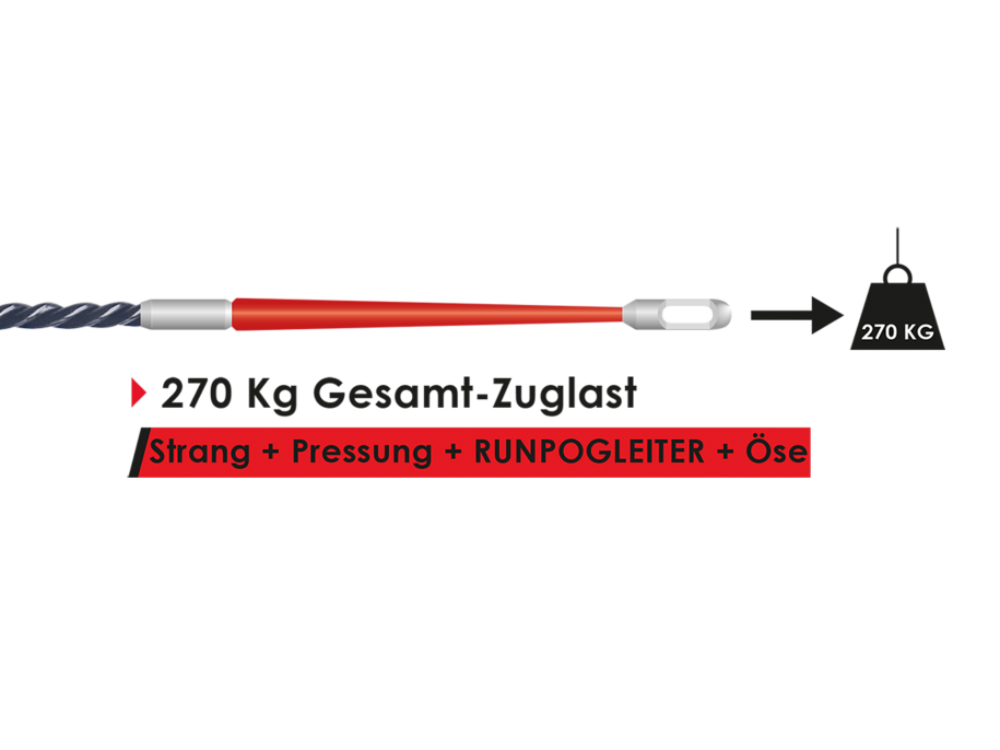 • RUNPO 5 duljine 30 metara sa patentiranom RG7 vodičkom glavom omogućava savladavanje najužih radijusa, totalnog opterećenja od 270 kilograma u relaciji sa cijelim sustavom potezanja.